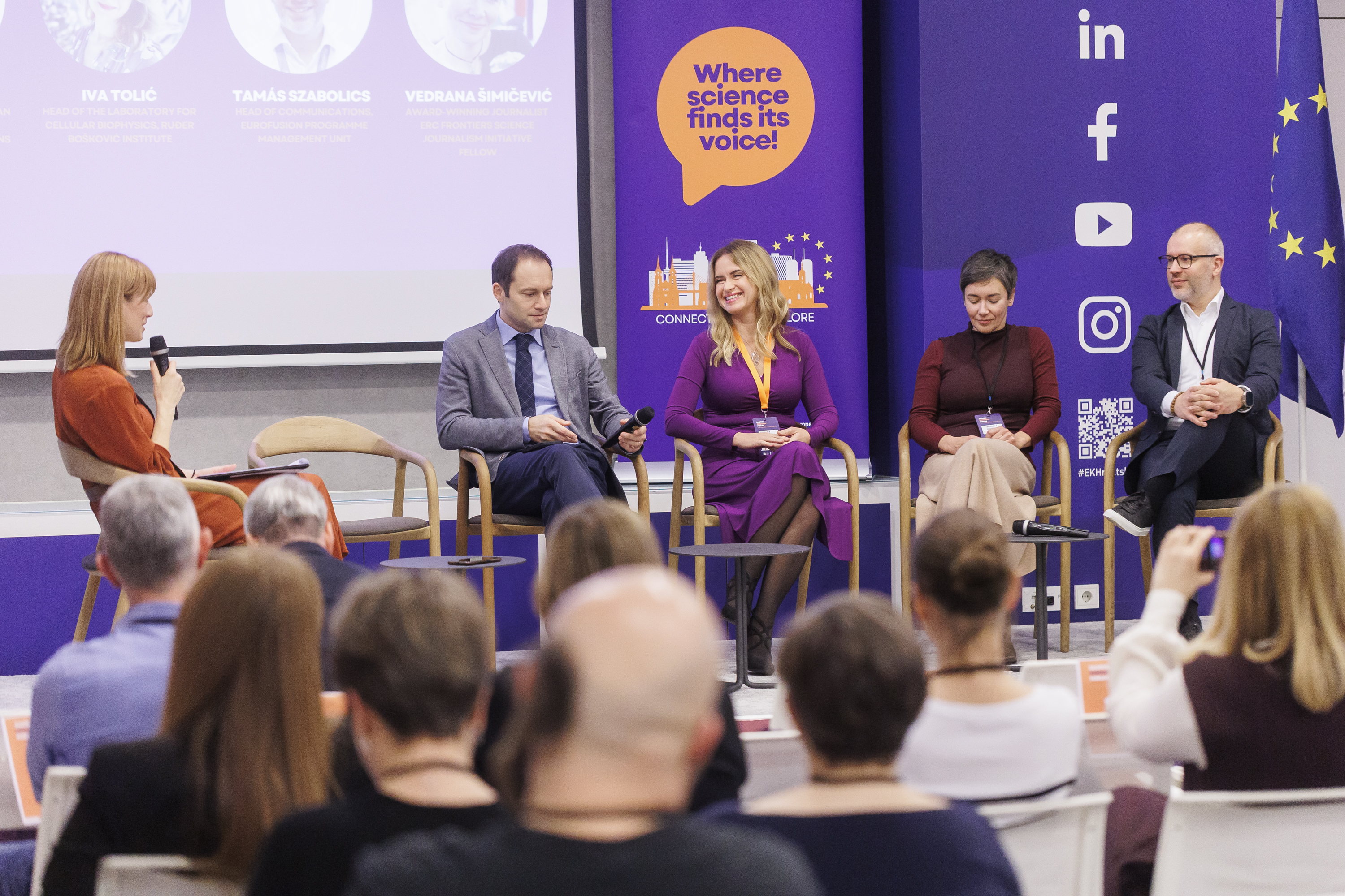 On December 4, Smiljka Vikić Topić (Senior Research and Innovation Manager) and Nikolina Lednicki (Communications Manager), attended the Zagreb Science Communication Forum 2025. The event gathered leaders from European institutions, Croatian Ministry of Science, Education and Youth, research organisations, universities and the wider science communication community. It underlined the essential role of communication in ensuring that information about the real benefits of excellent science reach the society.